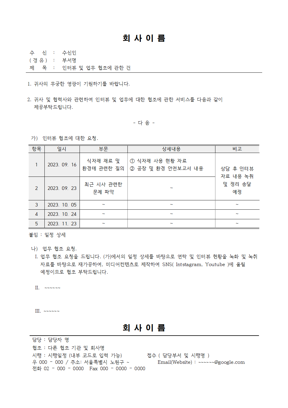 - 문서양식 #공문 #공문서 #협조요청 #협조양식 #협업